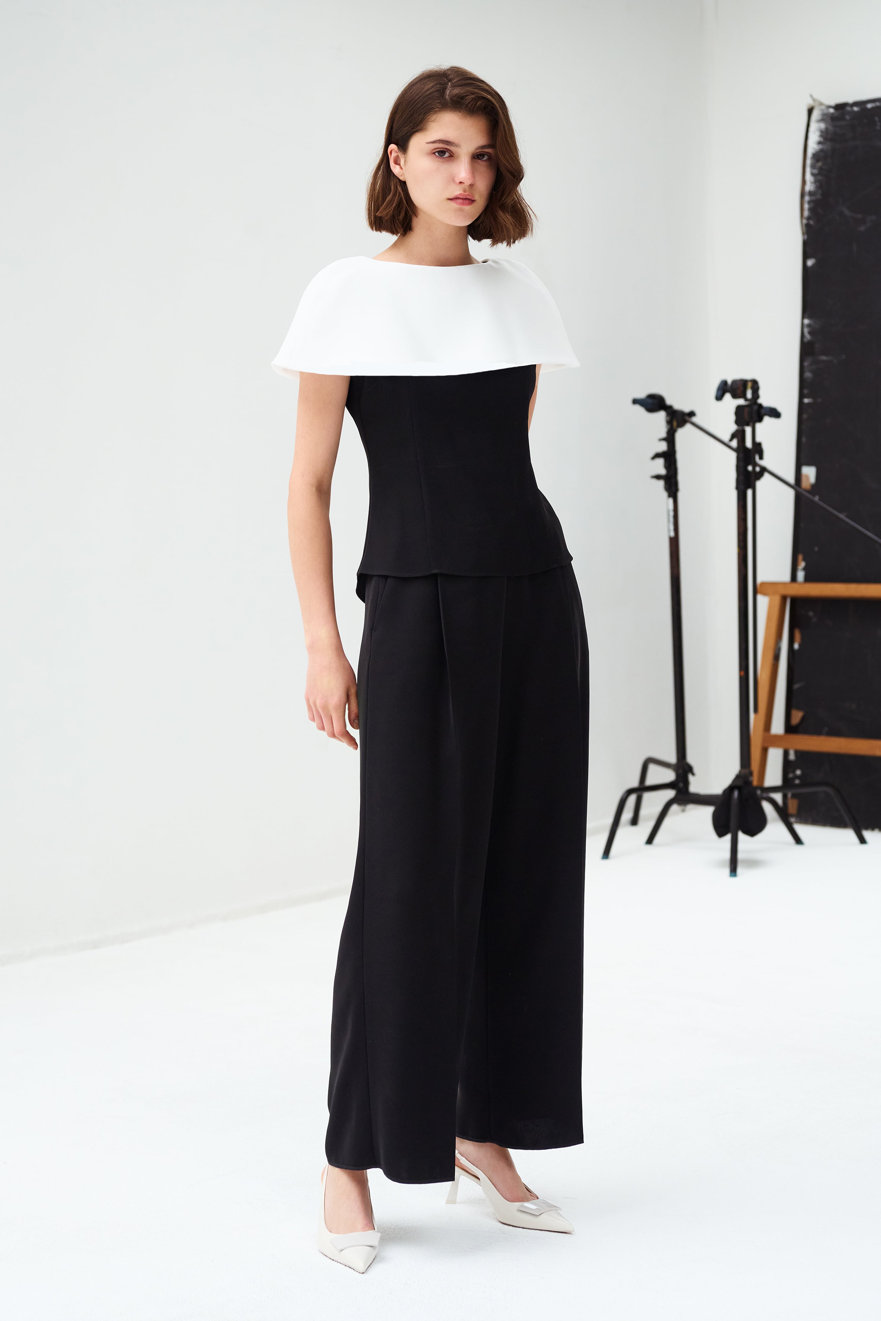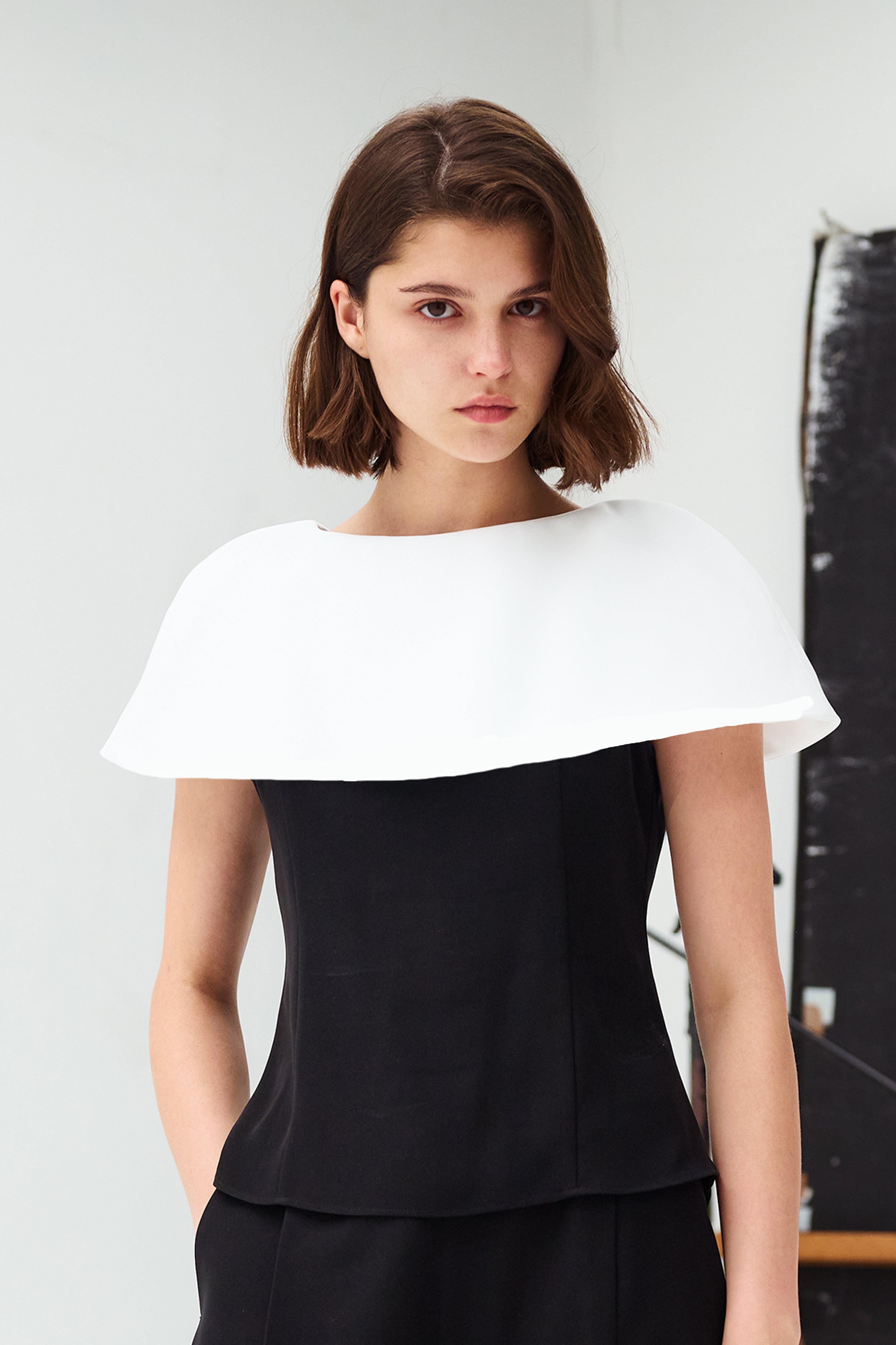 暗くなりがちな秋冬、美肌に見えるトップスをテーマにデザイン。あらゆるシーンのお出かけ、友達とのランチ、家族との集まり、お仕事、子どもとのお出かけ、『第一印象が綺麗に見える』ってとても大事。白のケープがレフ板効果で美肌に見せてくれるトップスです。