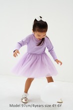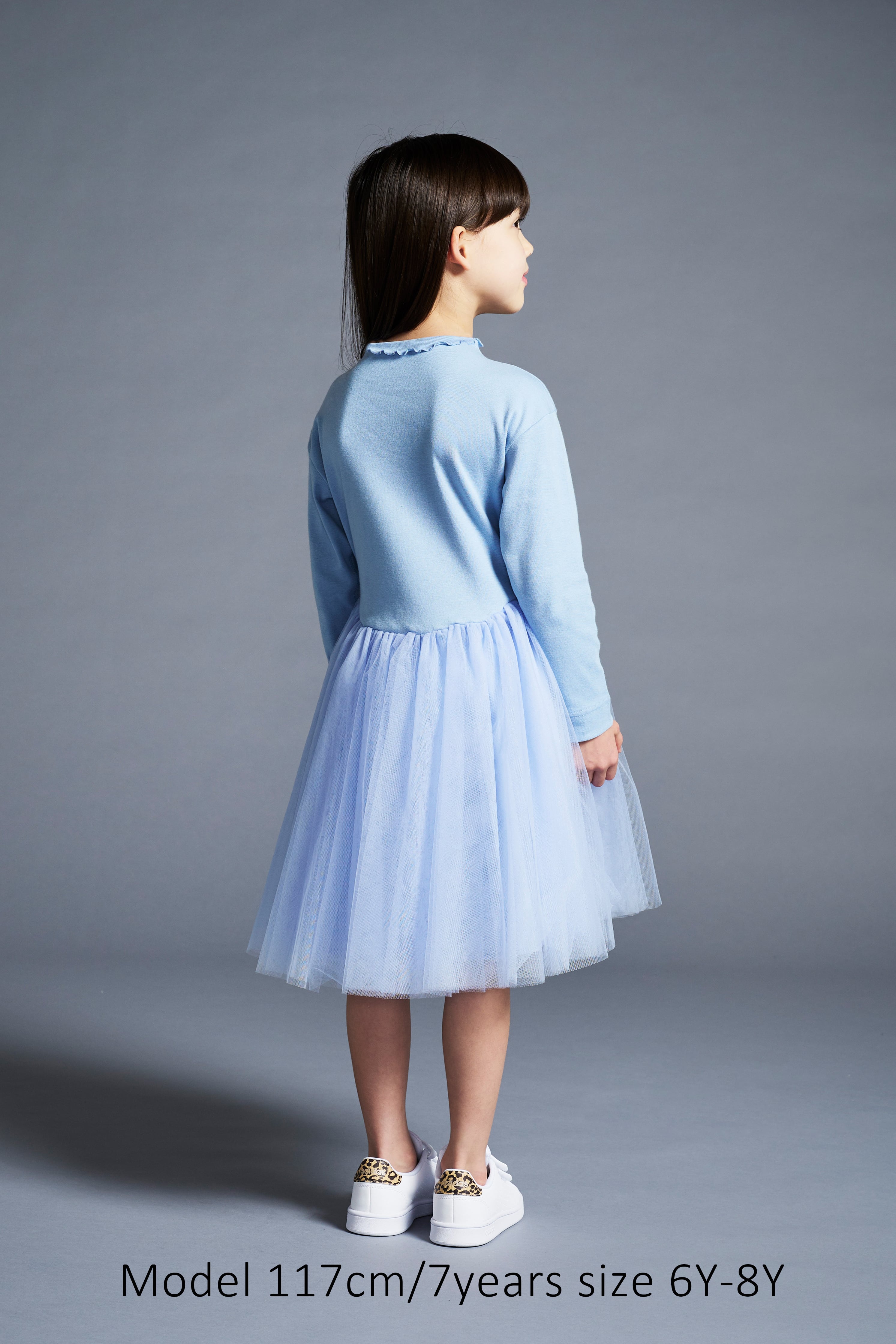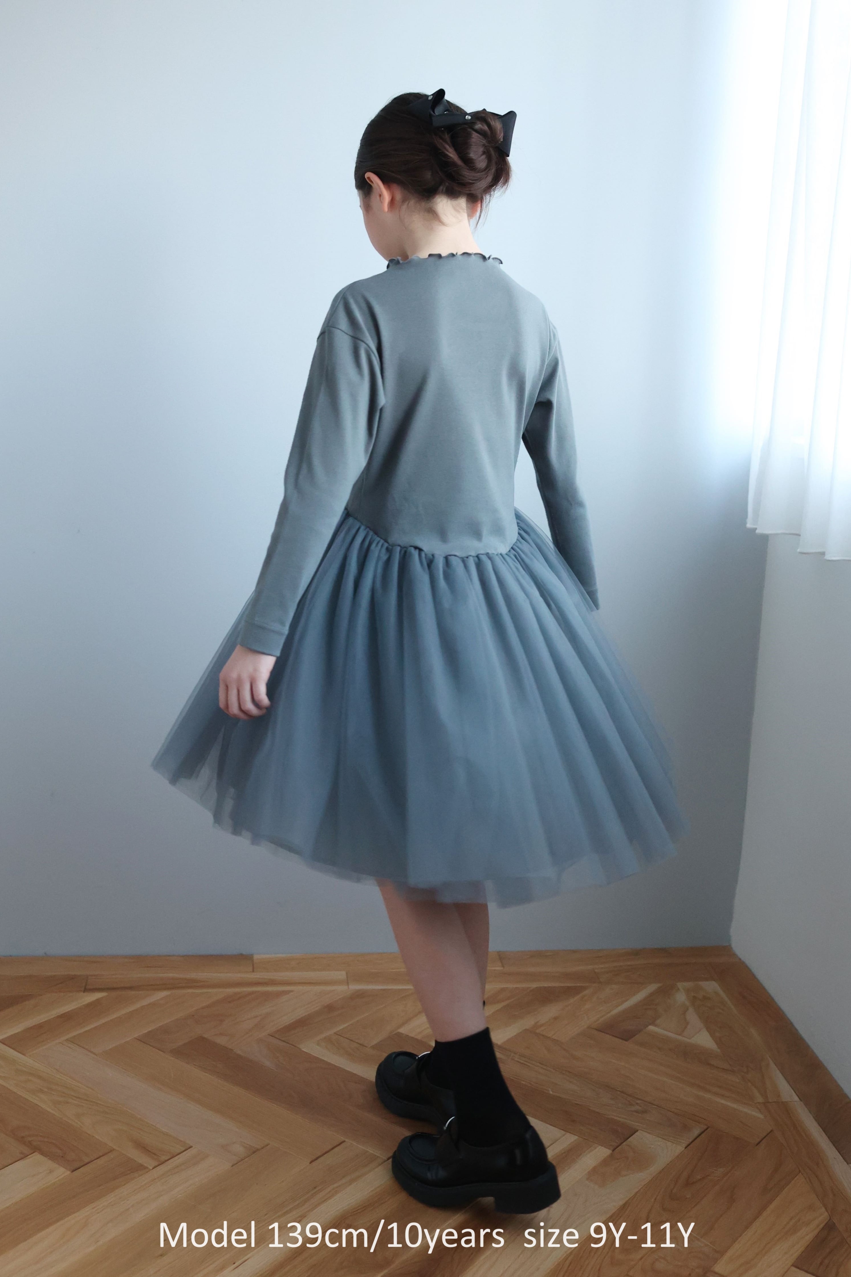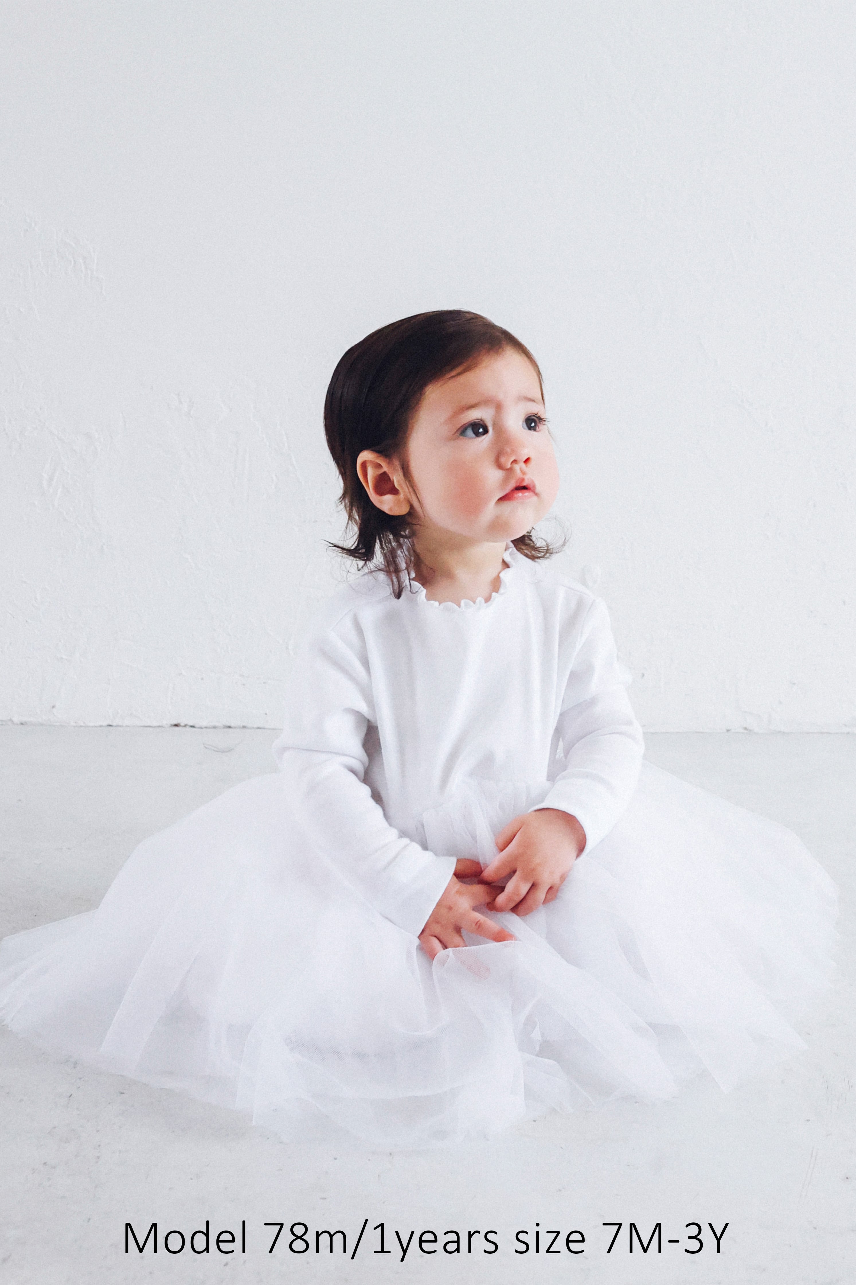 着心地でご機嫌が左右されるBABY&KIDSのために、体に密着する部分は動き回る子どもたちにピッタリな伸縮性に優れたジャージー素材を使用。スカート部分は何層にも重ねたふわっと広がるチュール素材。一枚で日常をドレスアップできます!