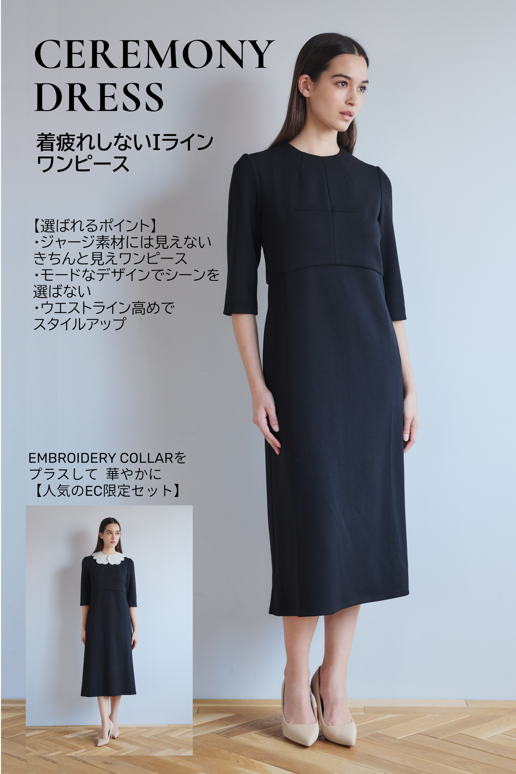 セレモニードレス、トレンドに左右されることなく、毎日着心地がよく自分にドレス。シンプルで上品かつ着心地にこだわった一枚をお届けします。オケージョンシーンにモード感とリラックス感をプラスして生地とシルエットにこだわりました。きちんとしたい場面でも着疲れることなく、お召しいただけます。シンプルなカッティングを生かしたIラインワンピース。ソフトなスポンディングのジャージ素材には見えない綺麗さ、ほどよいゆとり感が着心地良く、一日中綺麗な印象に。