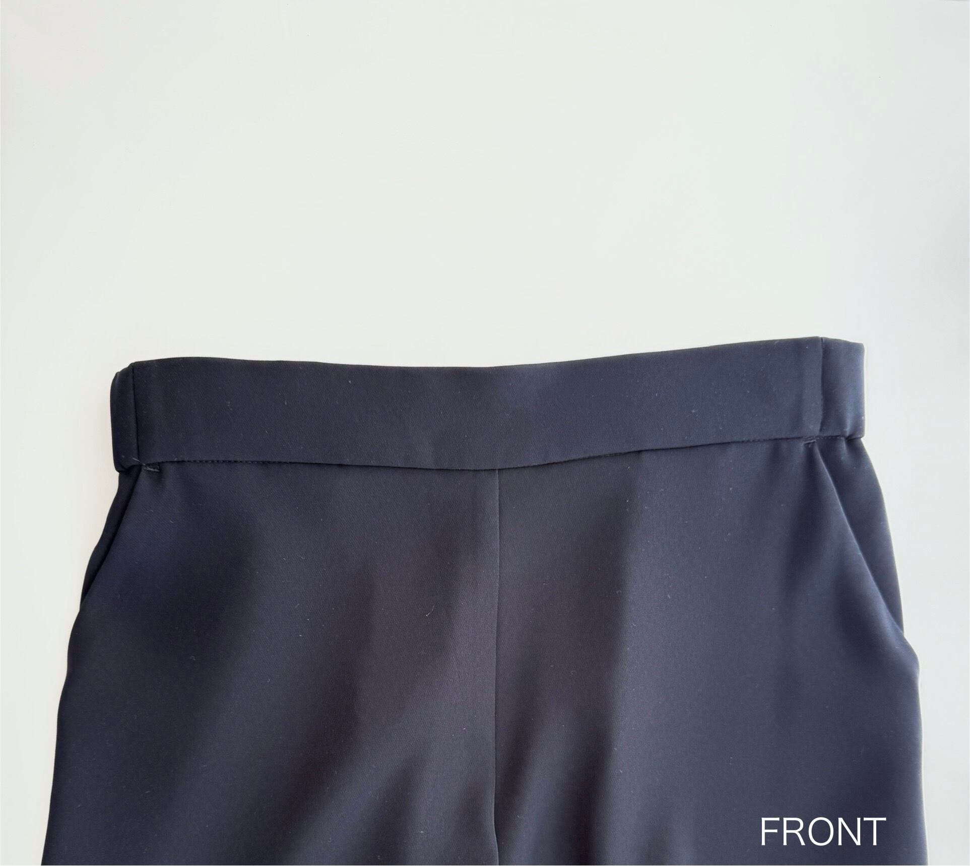 ウエスト部分は前はフラット、後ろはゴム仕様になります。