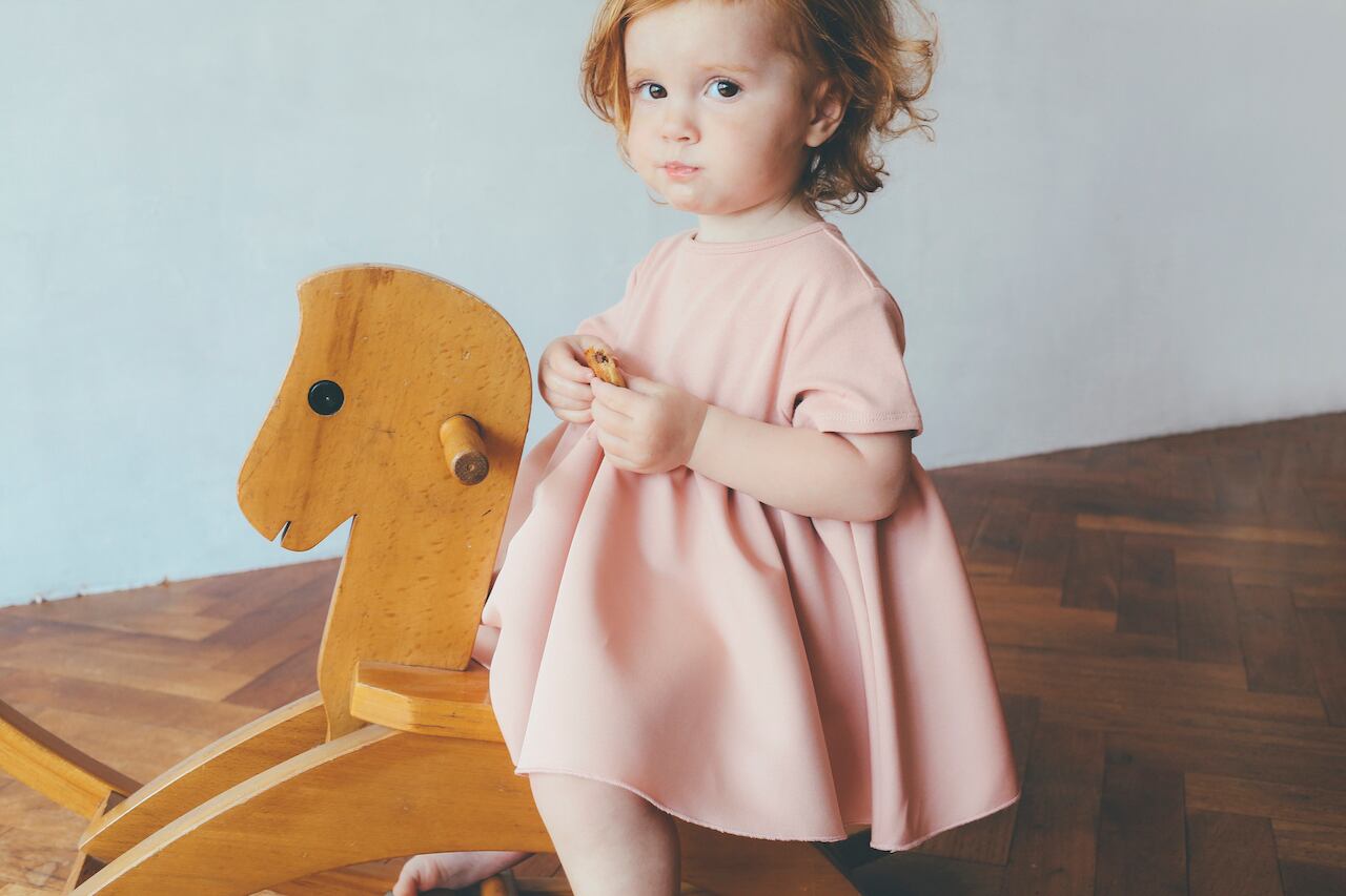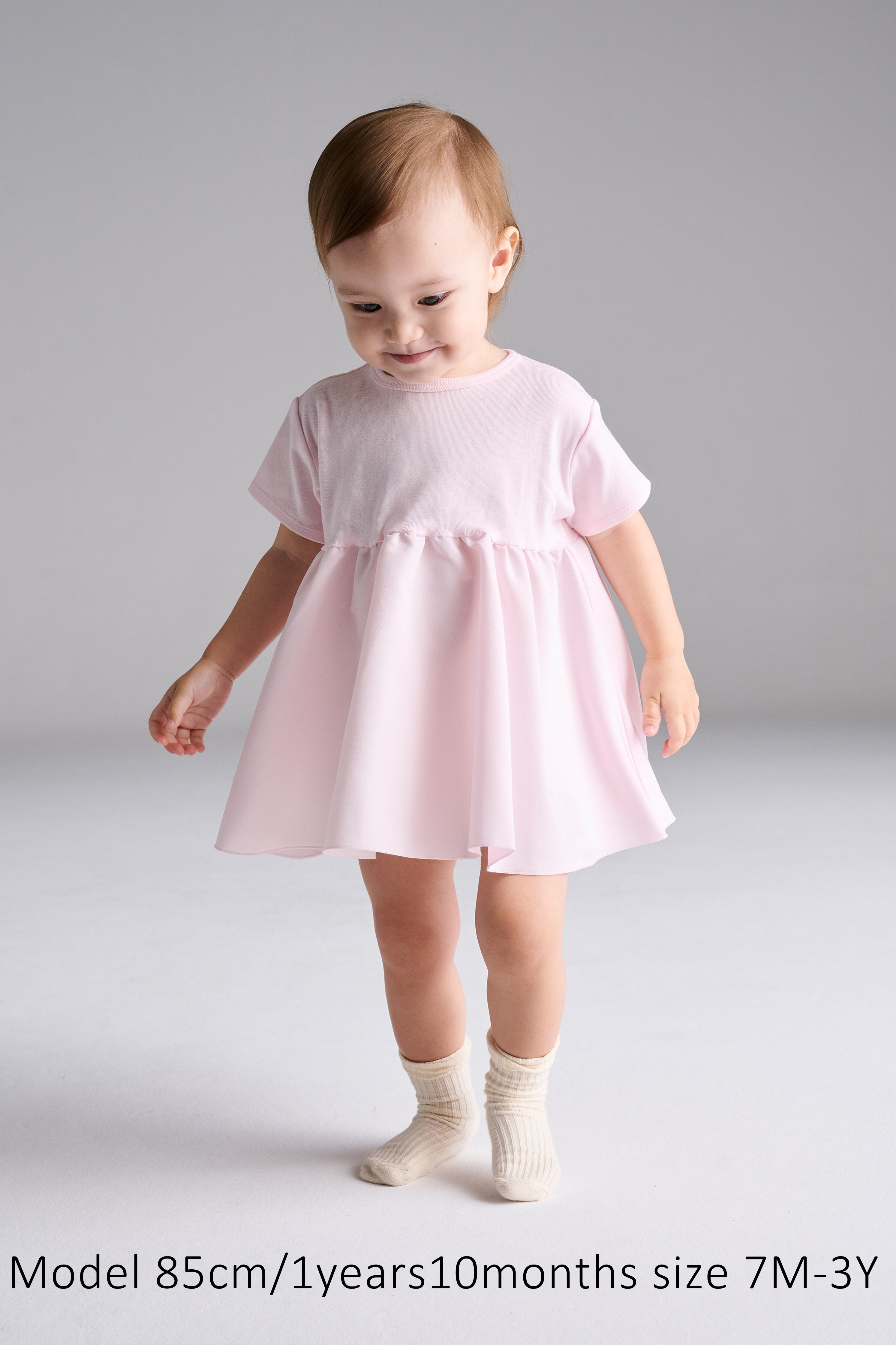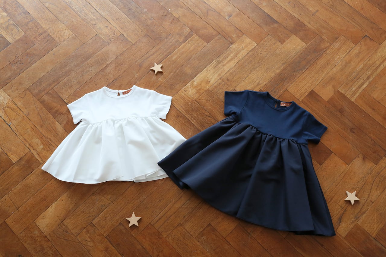 着心地でご機嫌が左右されるベビー&キッズのために、身頃素材は動きやすいストレスのない伸縮性に優れたジャージーを使用。スカート部分はふわっと広がる光沢のグログラン素材。一枚で日常をドレスアップできます!忙しいママに優しい、シワになりにくく、ご自宅の洗濯機でホームクリーニングしても綺麗に保たれる上質な素材を厳選。お出かけシーンにオススメです。