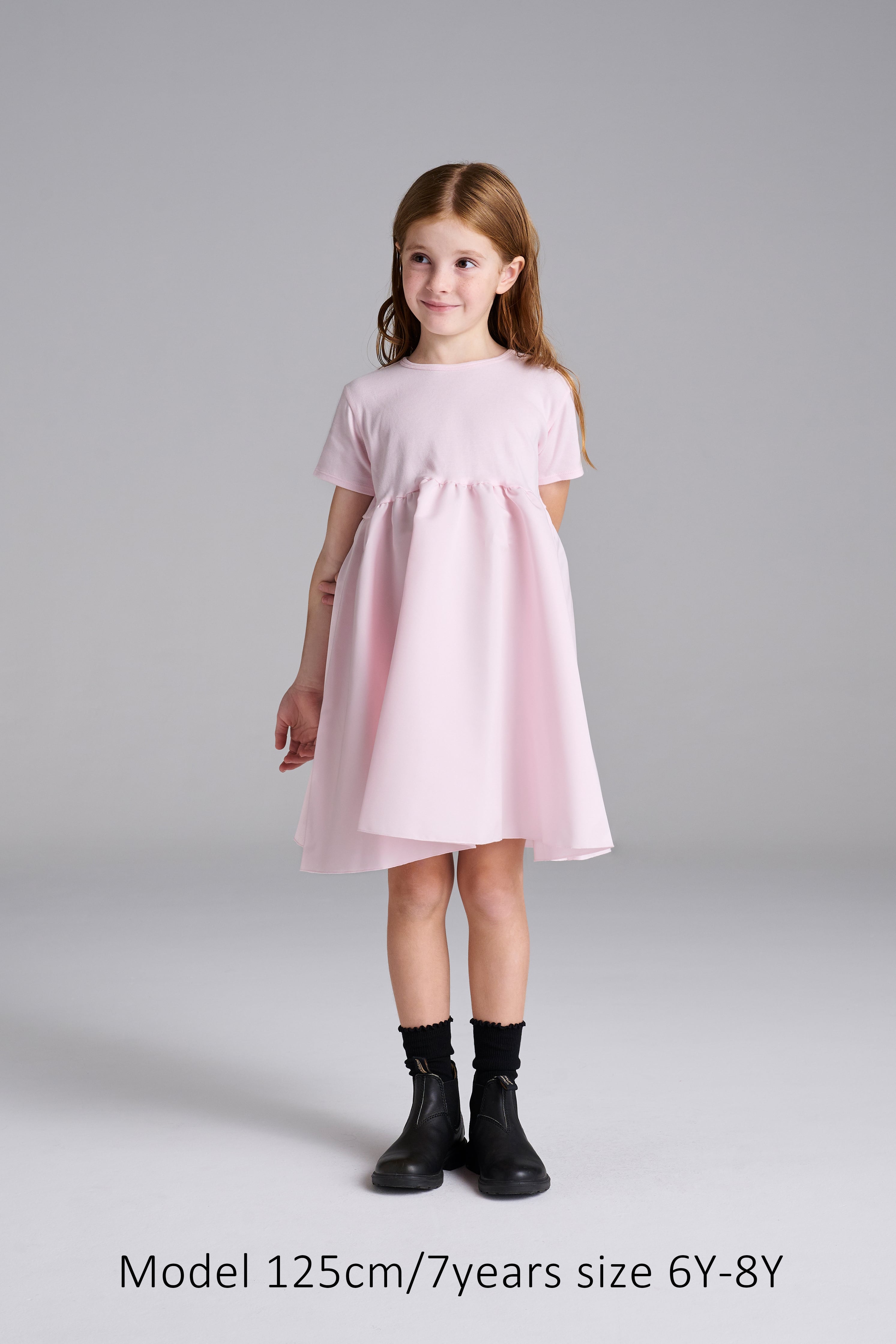 着心地で機嫌が左右されるBABY&KIDSたち。体に密着する部分は動き回る子どもたちにピッタリな伸縮性に優れたジャージー素材。汗かきやすい子どもにもさらっとして着心地が良い生地です。スカート部分は上品な光沢とハリのあるグログラン素材を使用し、バレリーナのチュチュのようなラインを実現しました。一枚で日常をドレスアップできます!忙しいママに優しい、シワになりにくく、ご自宅の洗濯機でホームクリーニングしても綺麗に保たれる上質な素材を厳選。