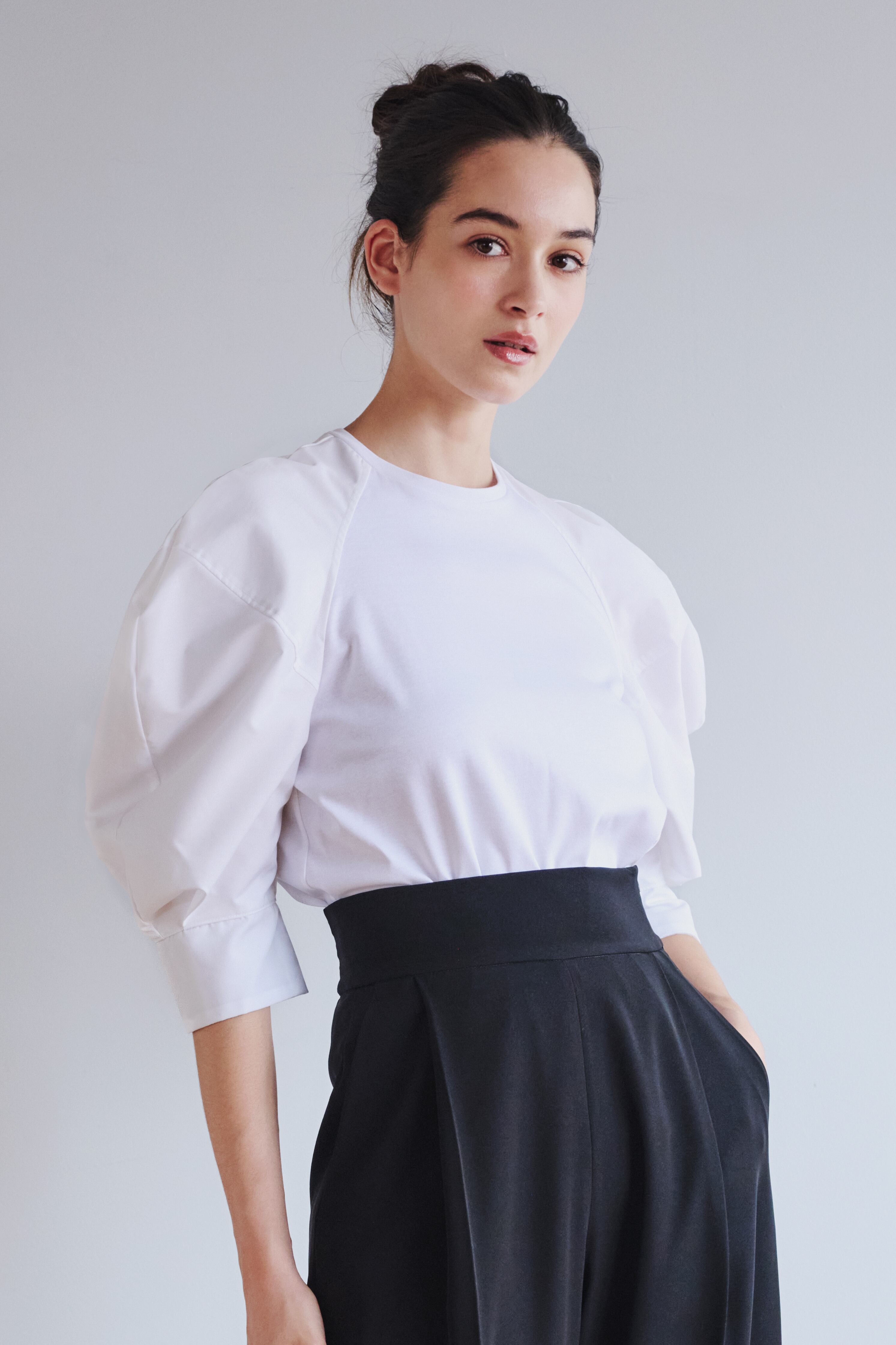"小顔みせパフトップス。