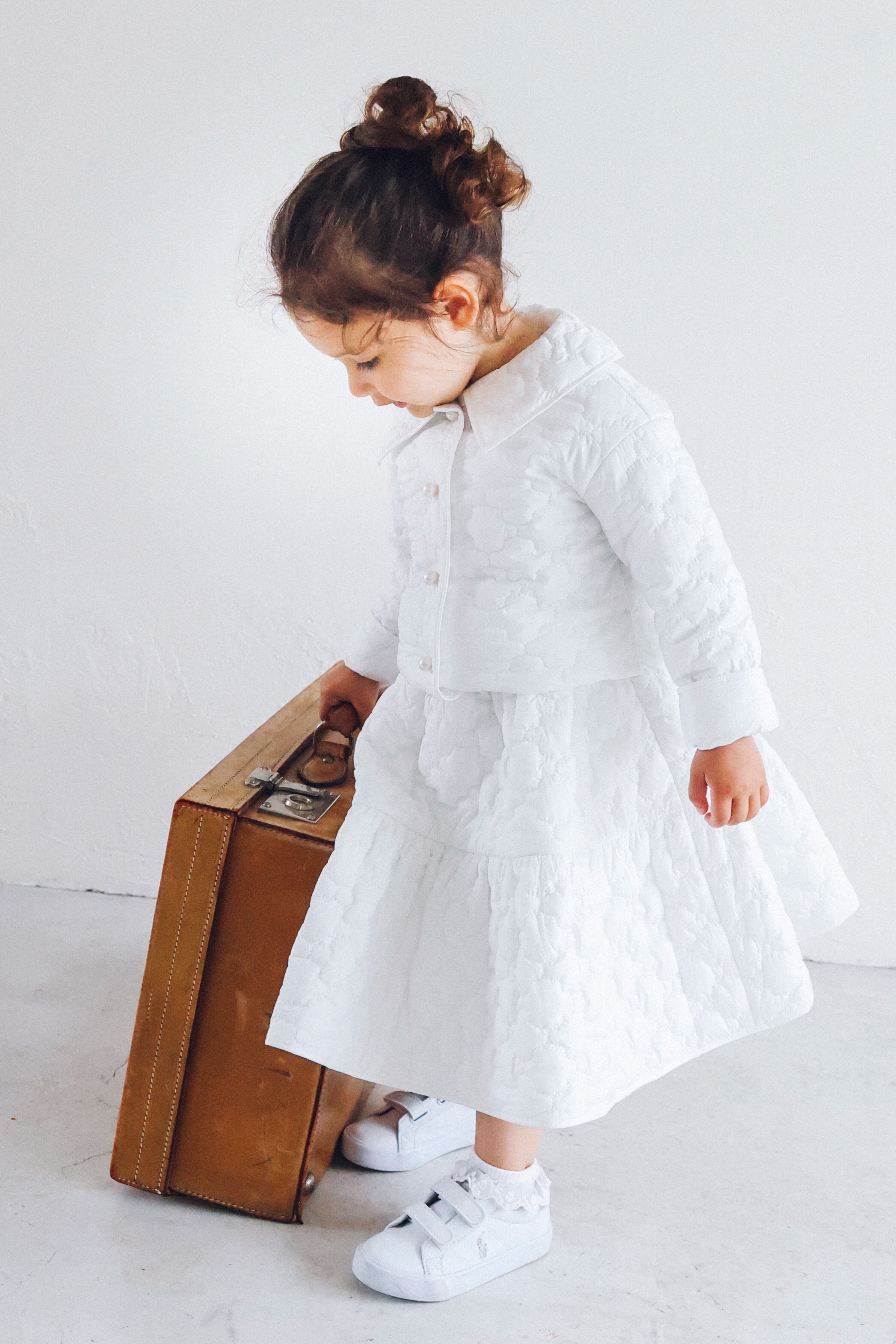 カジュアルに見えがちなキルティングを綺麗にお召しいただけるよう、繊細できめ細かい生地を厳選。オールパイピングで、ボタンはパールを使用。贅沢に裏も表地を使っています。
