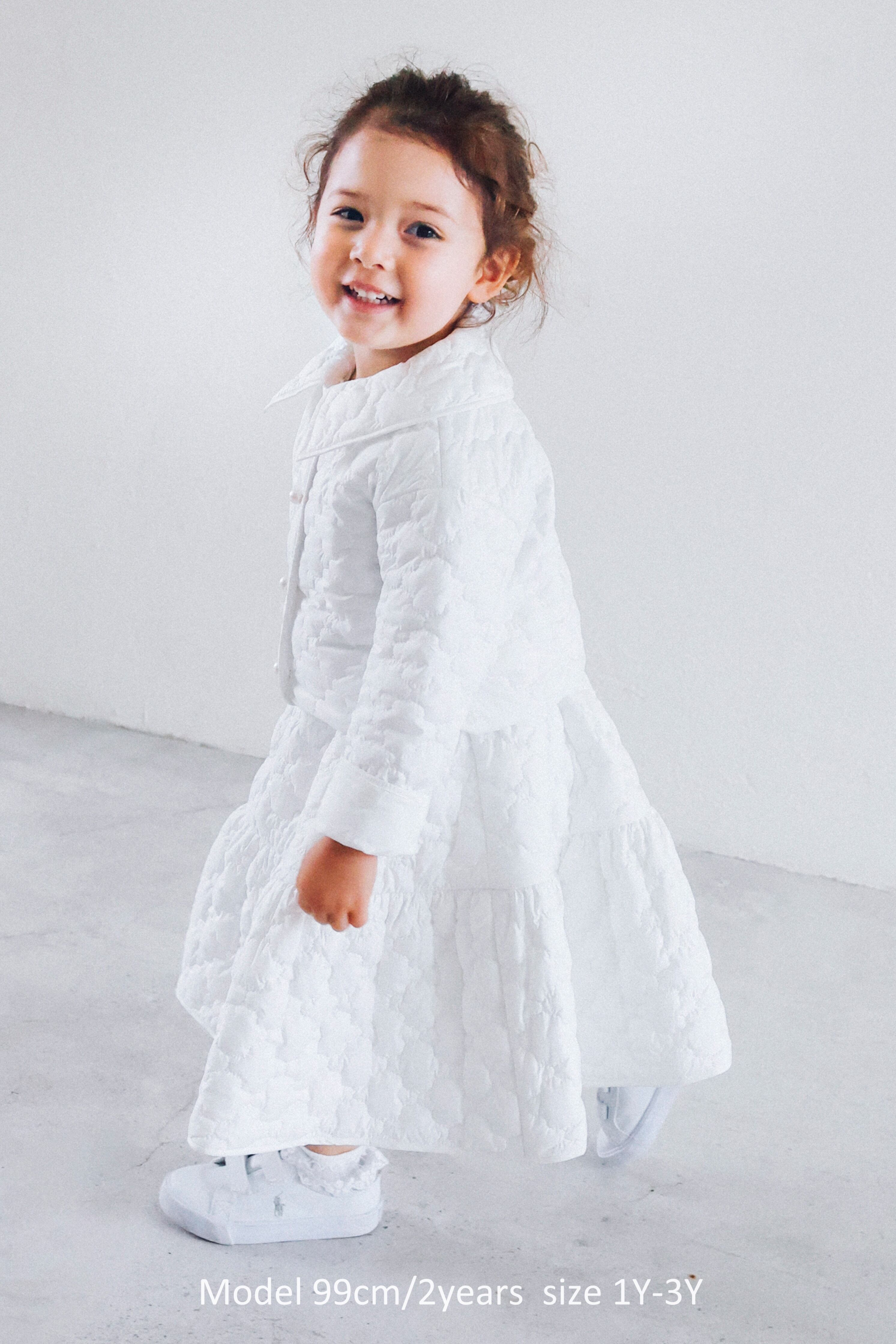 カジュアルに見えがちなキルティングを綺麗にお召しいただけるよう、繊細できめ細かい生地を厳選。オールパイピングで、ボタンはパールを使用。贅沢に裏も表地を使っています。