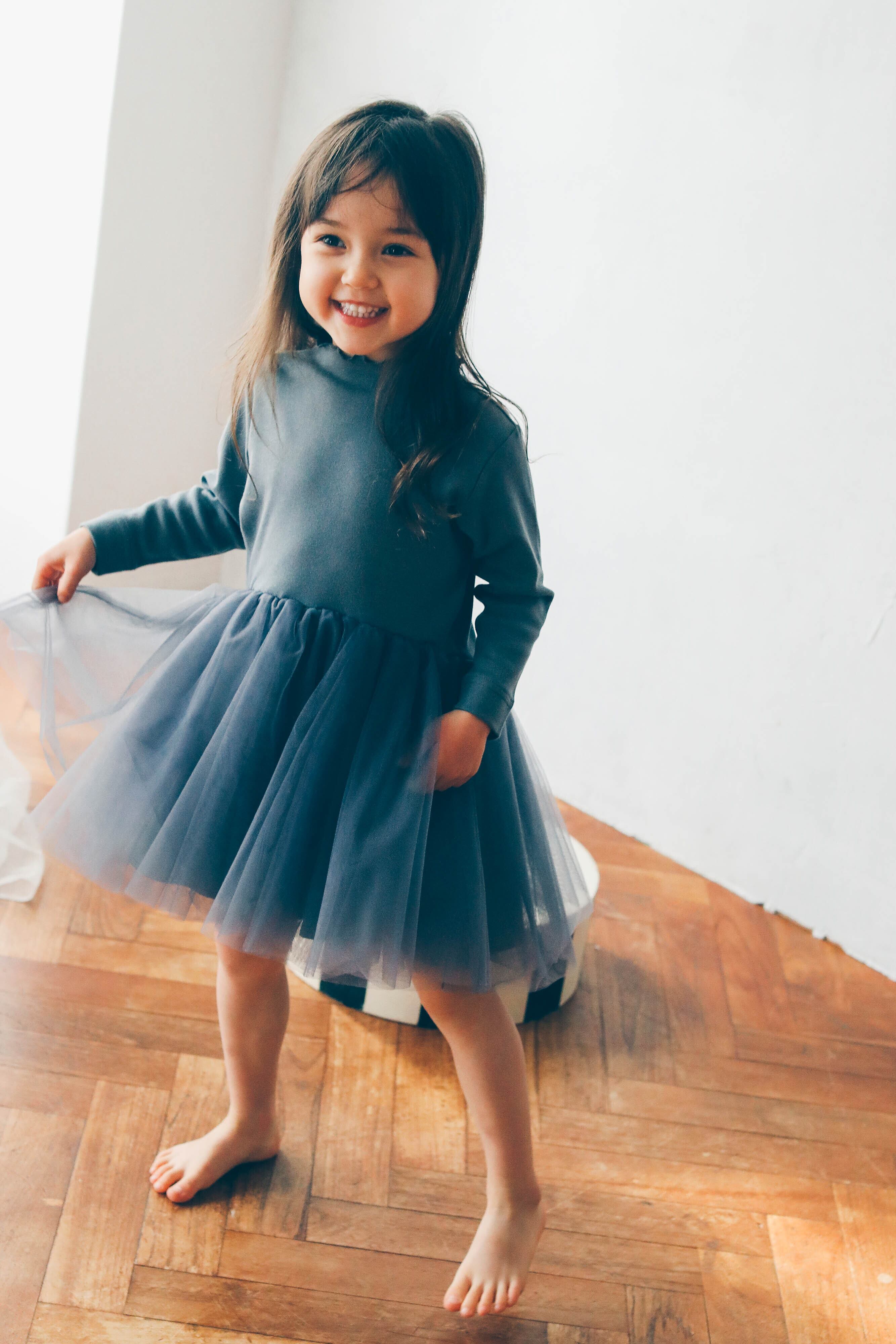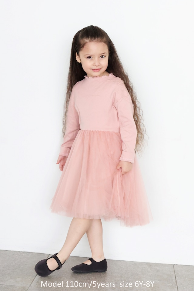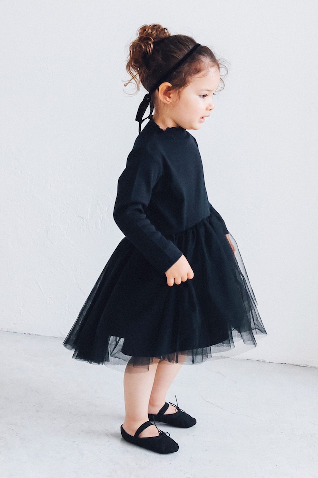 着心地でご機嫌が左右されるBABY&KIDSのために、体に密着する部分は動き回る子どもたちにピッタリな伸縮性に優れたジャージー素材を使用。スカート部分は何層にも重ねたふわっと広がるチュール素材。一枚で日常をドレスアップできます!