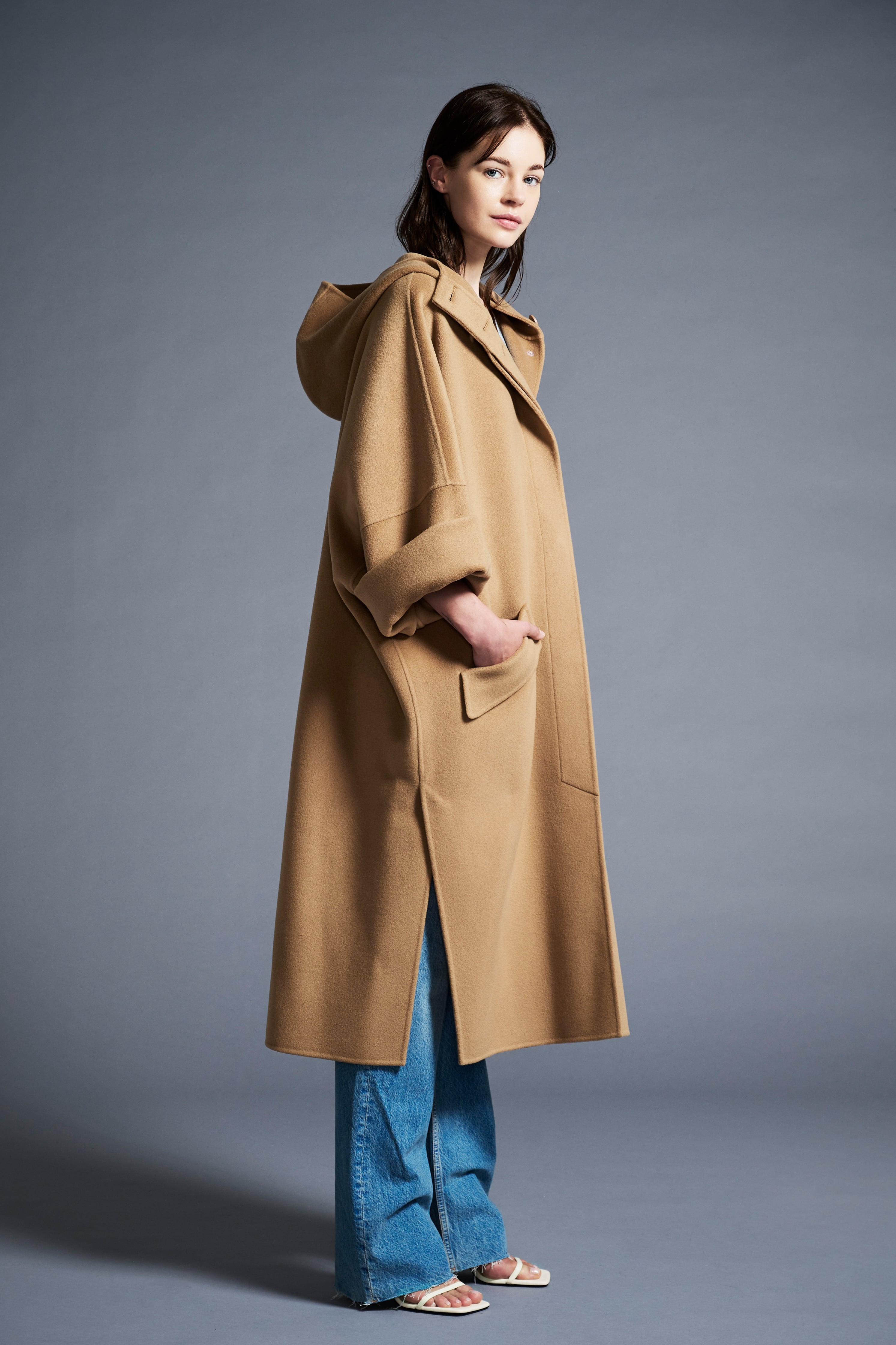 スーパー120エクストラファインの上質なウールを厳選。カシミヤ100%と同じ肌馴染みのよさを持ち合わせて、カシミヤより光沢感が少なく、ディリー使いができる上質な素材感。綺麗めなスタリングをカジュアルに、カジュアルなスタイリングを上品にランクアップしてくれる1枚のフーディコート。袖の長さを調整して、袖を三つ折りにして、ジレッぽくアレンジもできます。1枚でさまざまな着こなしを楽しんでいただけます。