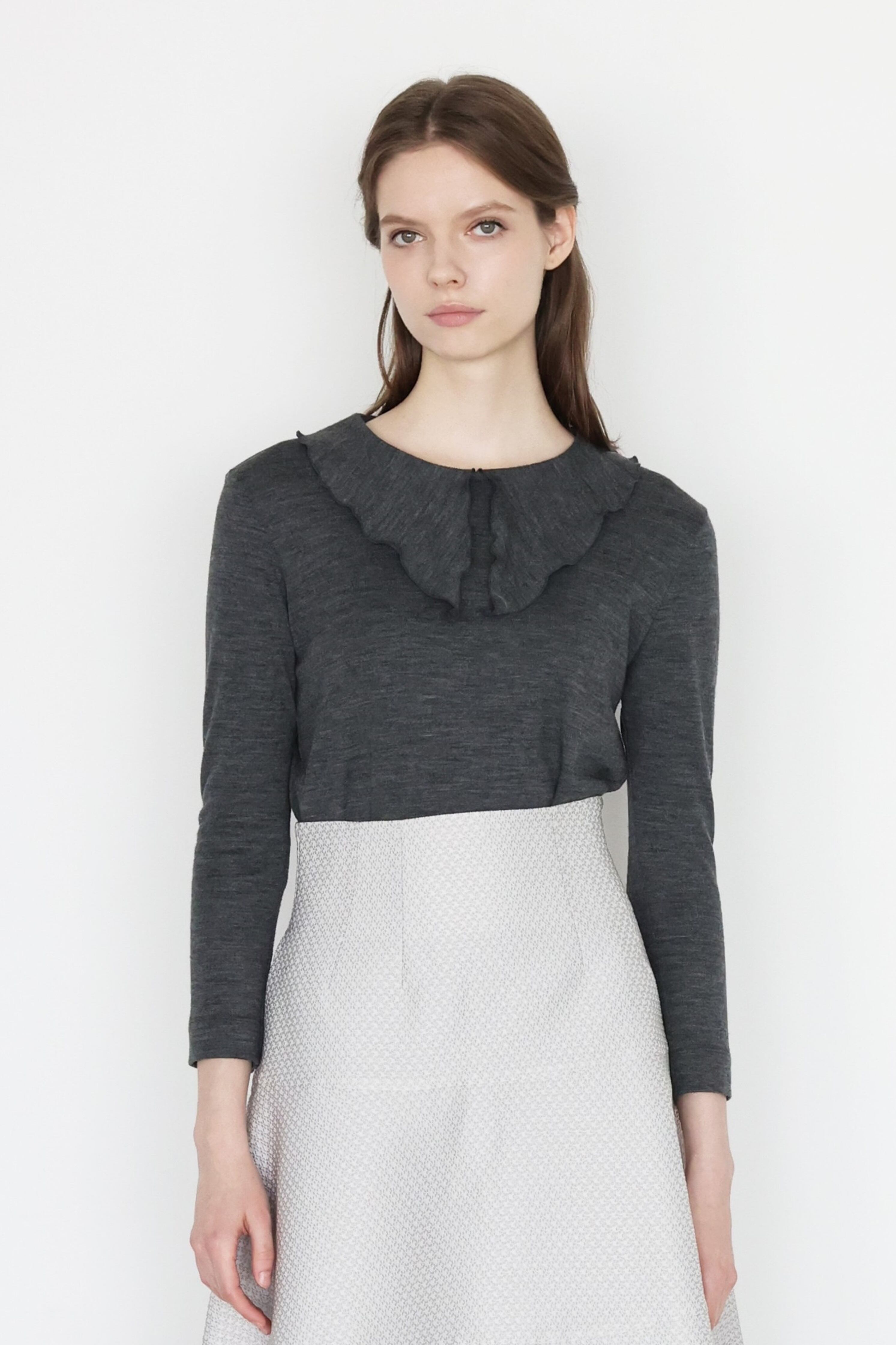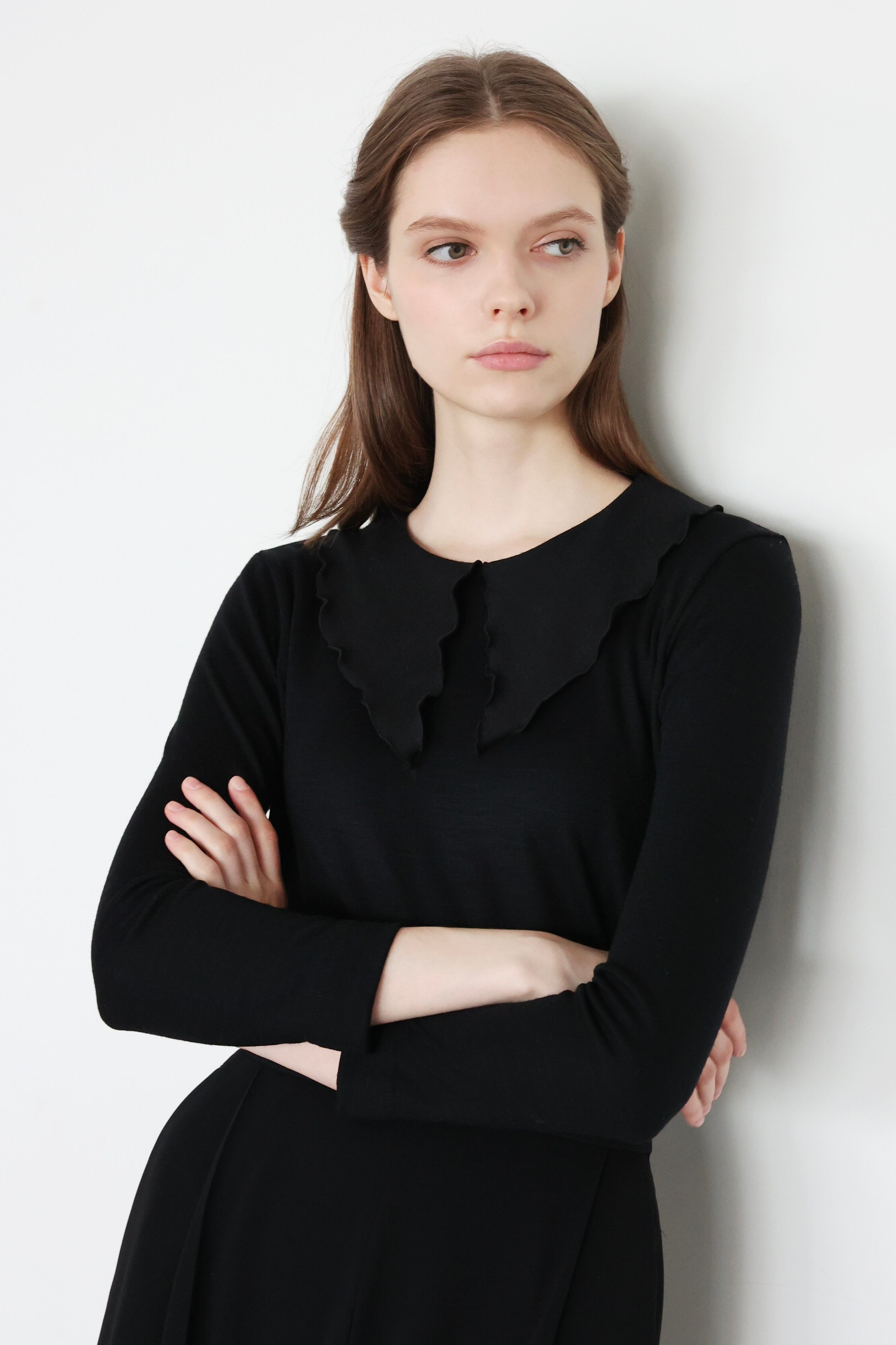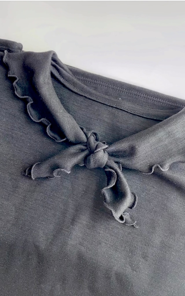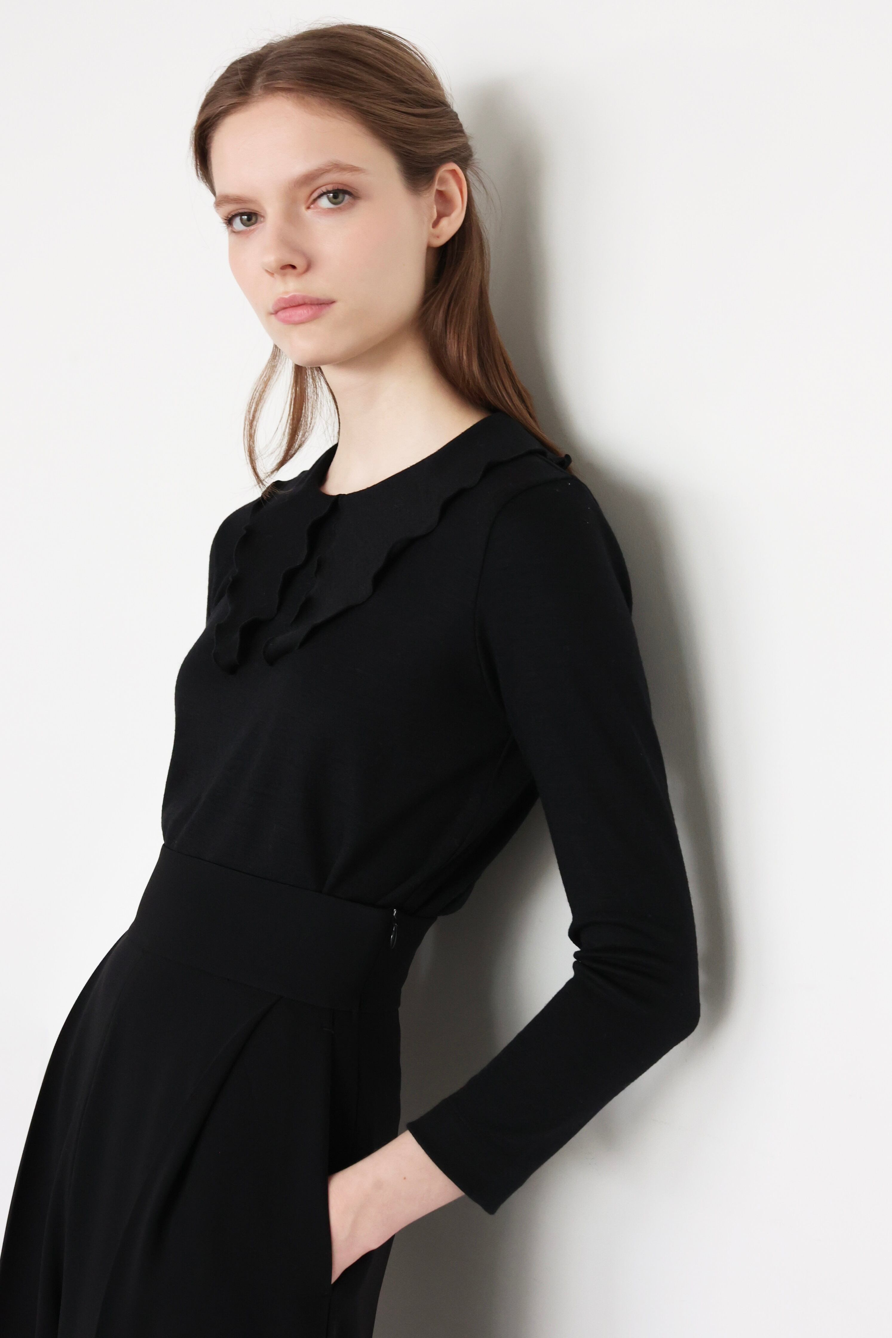 襟は2WAYで楽しんでいただけるよう、フリルを施した襟で、ちびリボンにもできます。