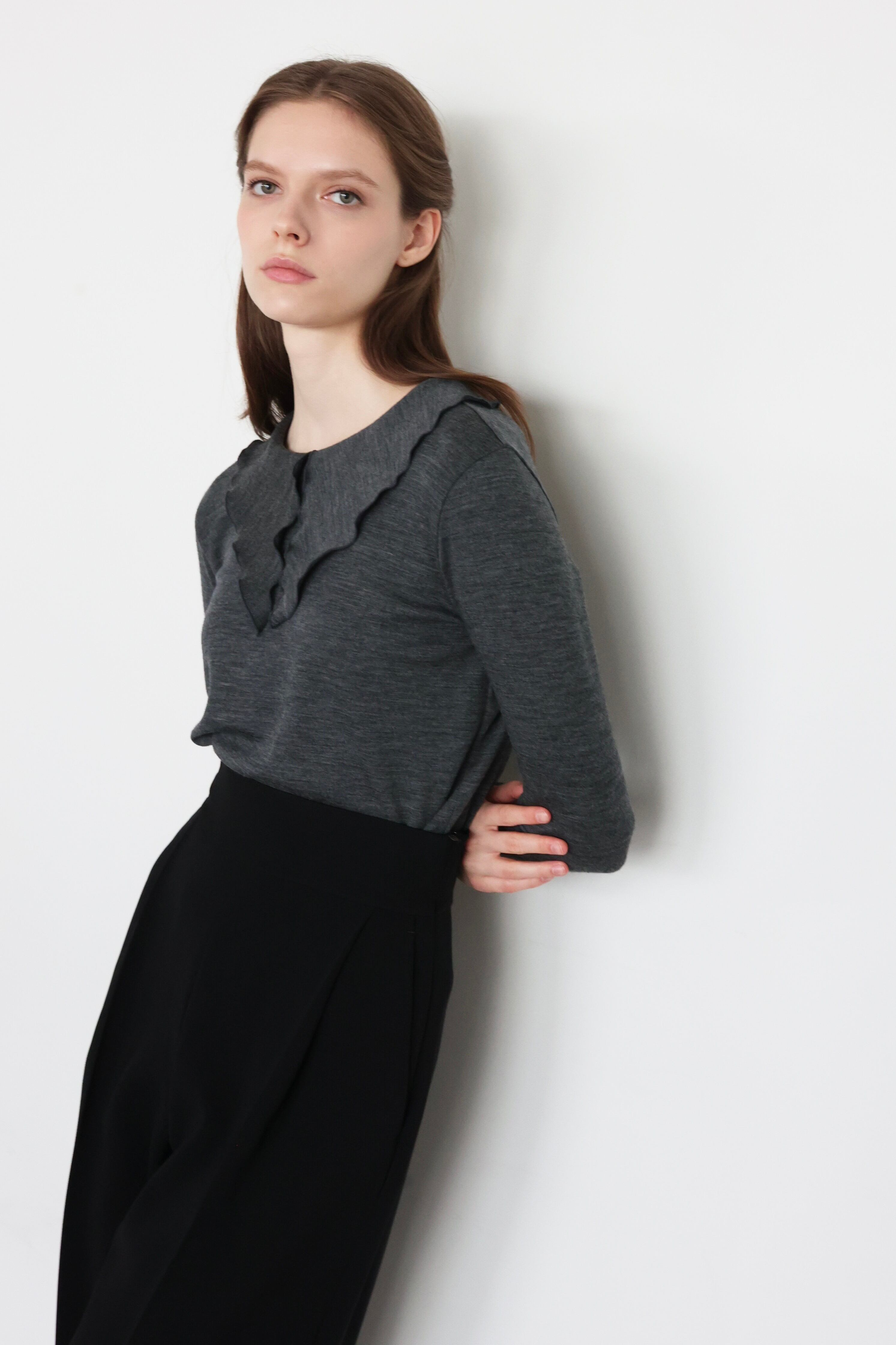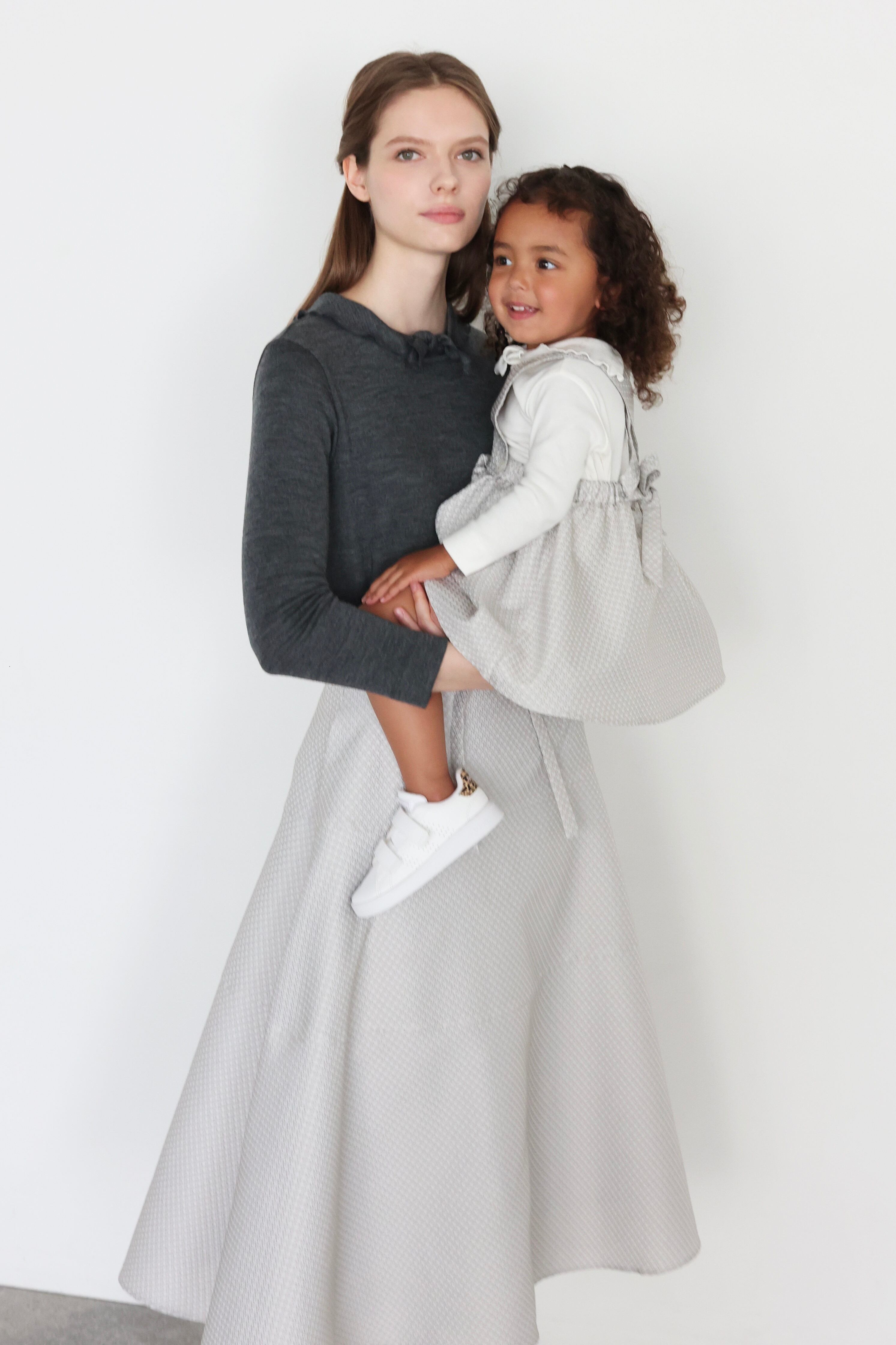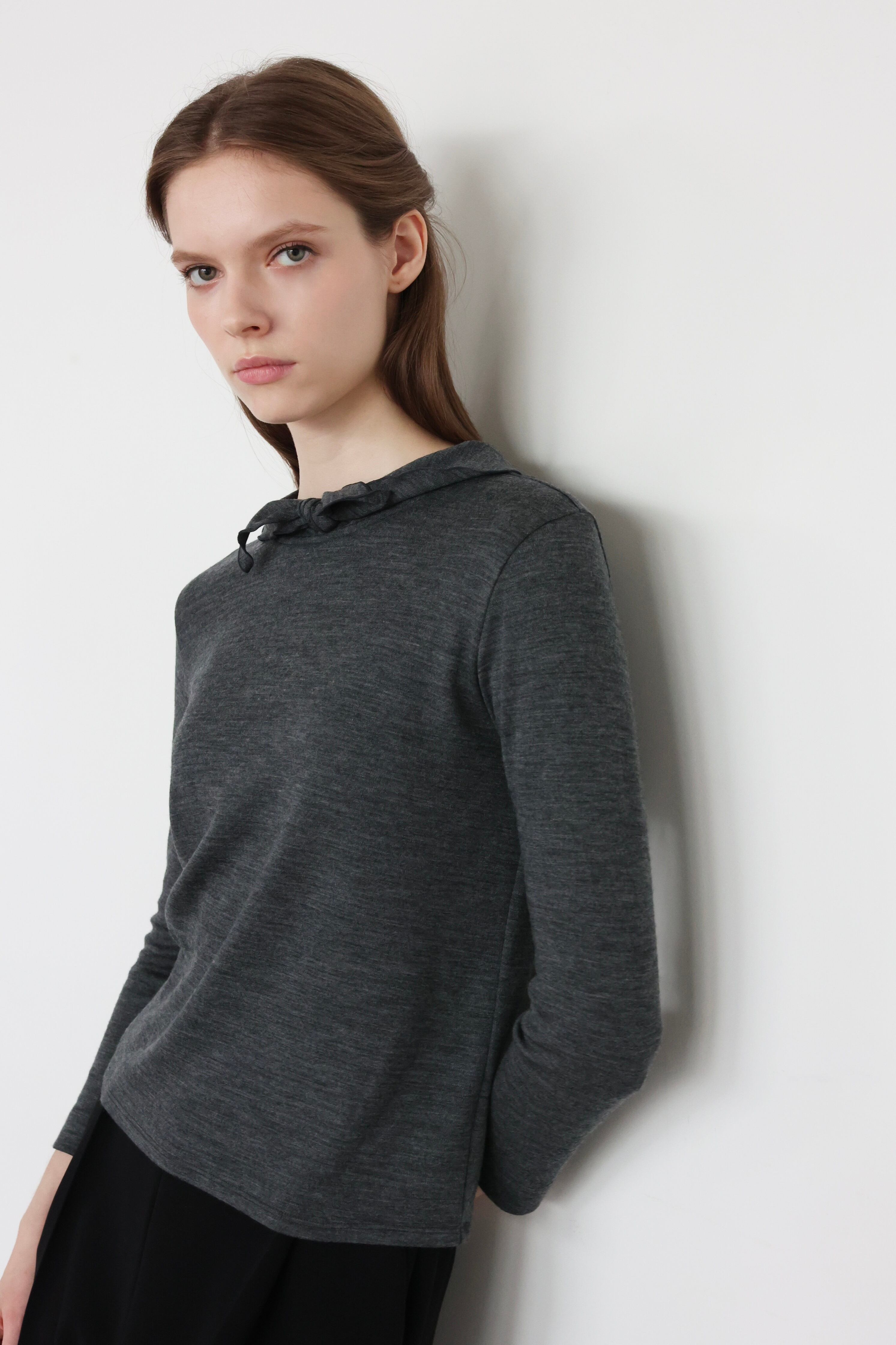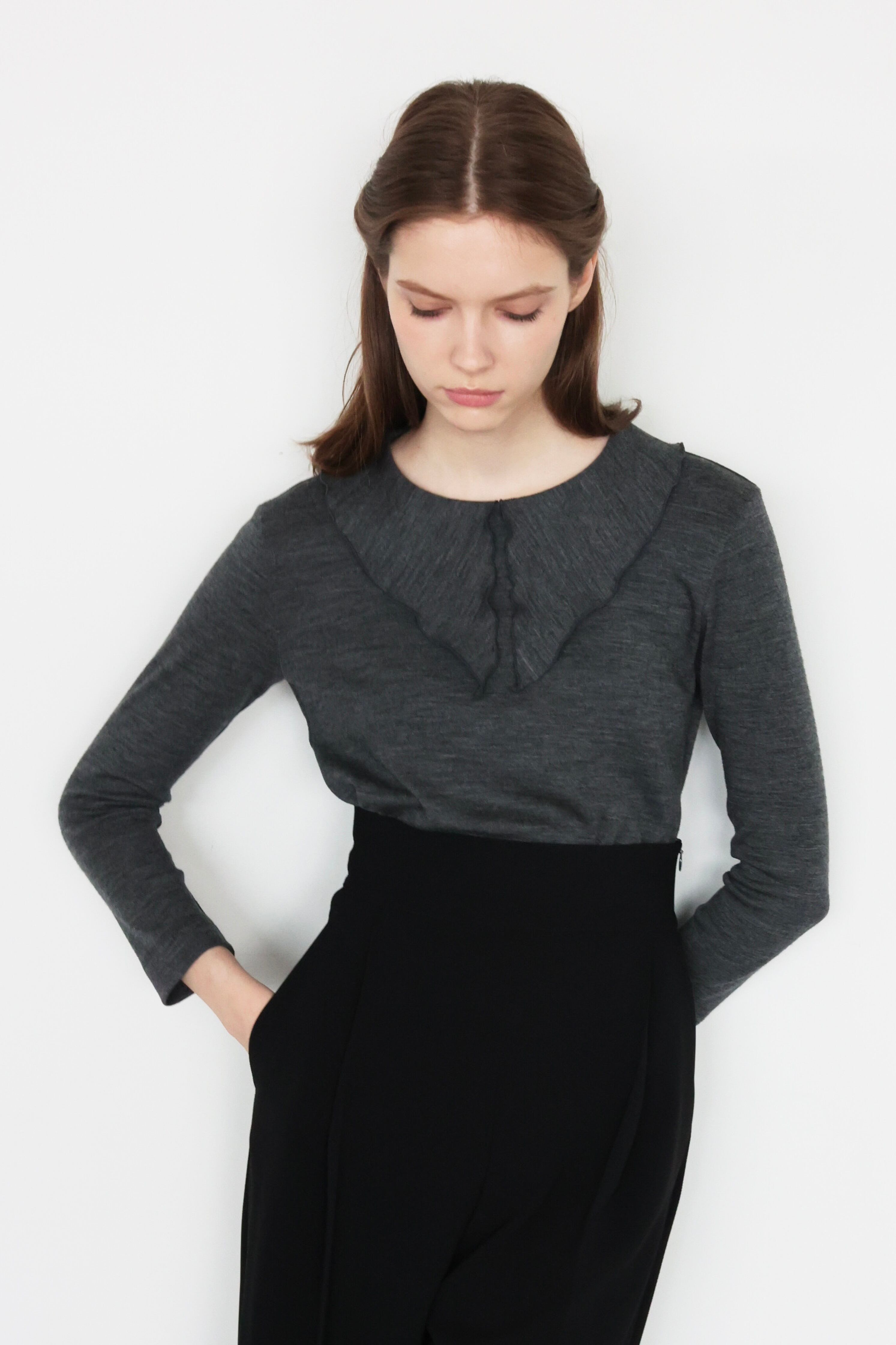 襟は2WAYで楽しんでいただけるよう、フリルを施した襟で、ちびリボンにもできます。