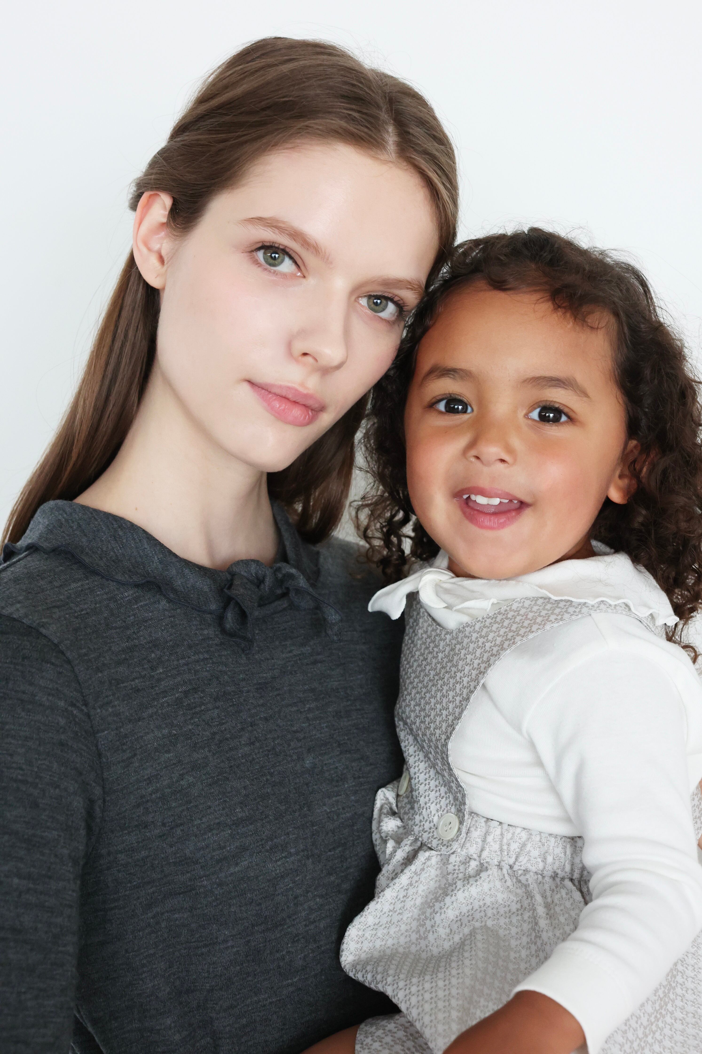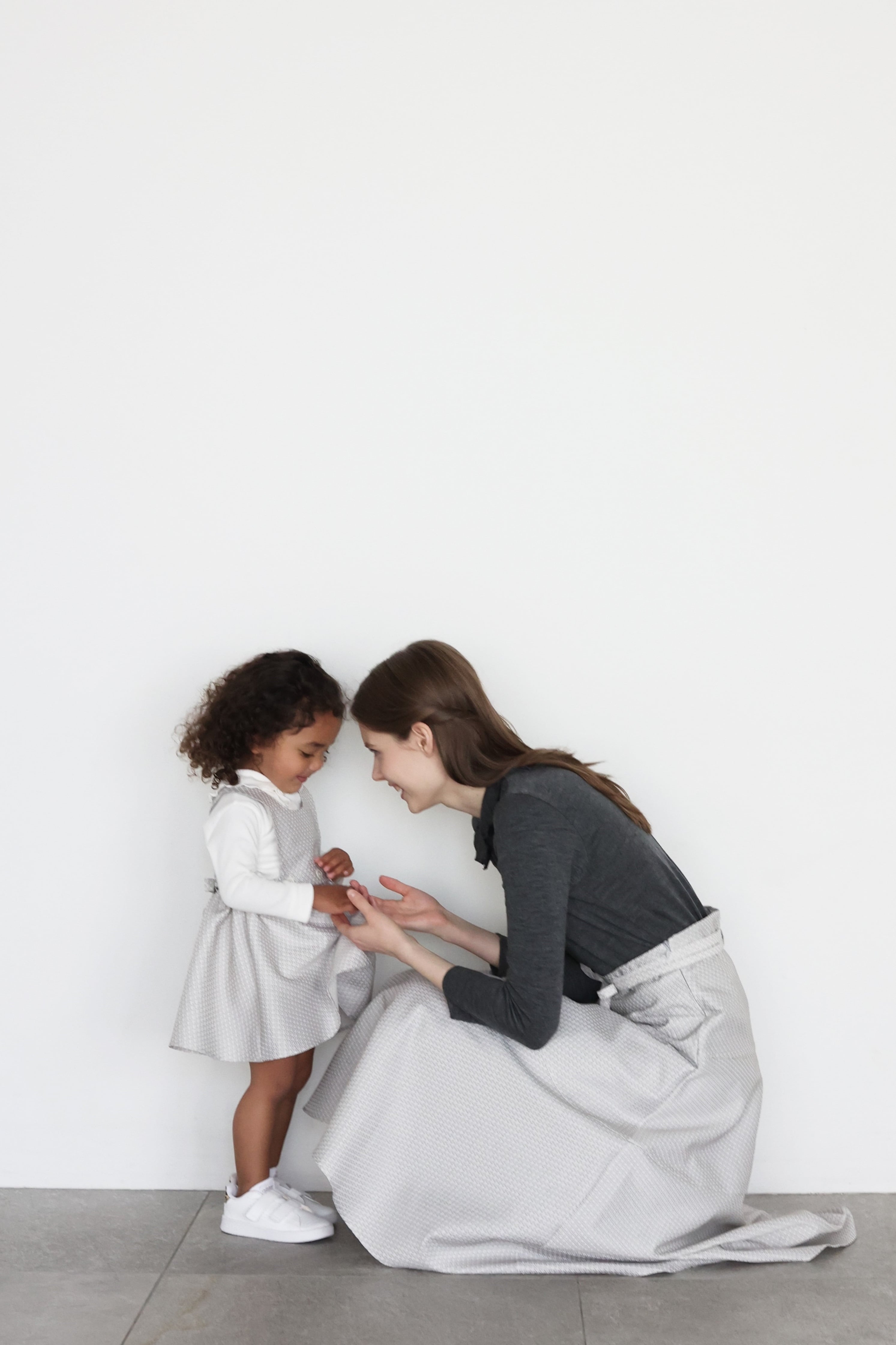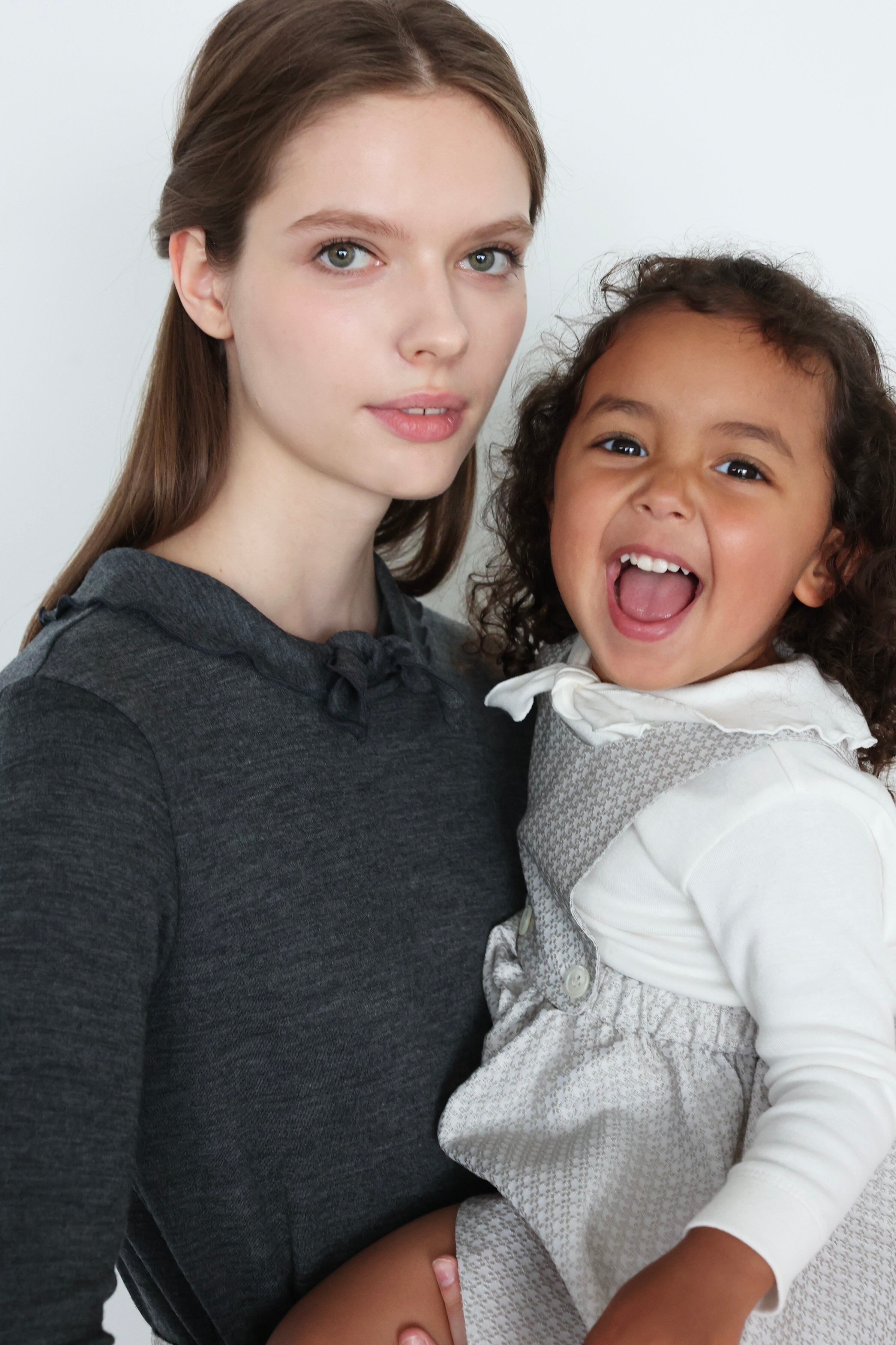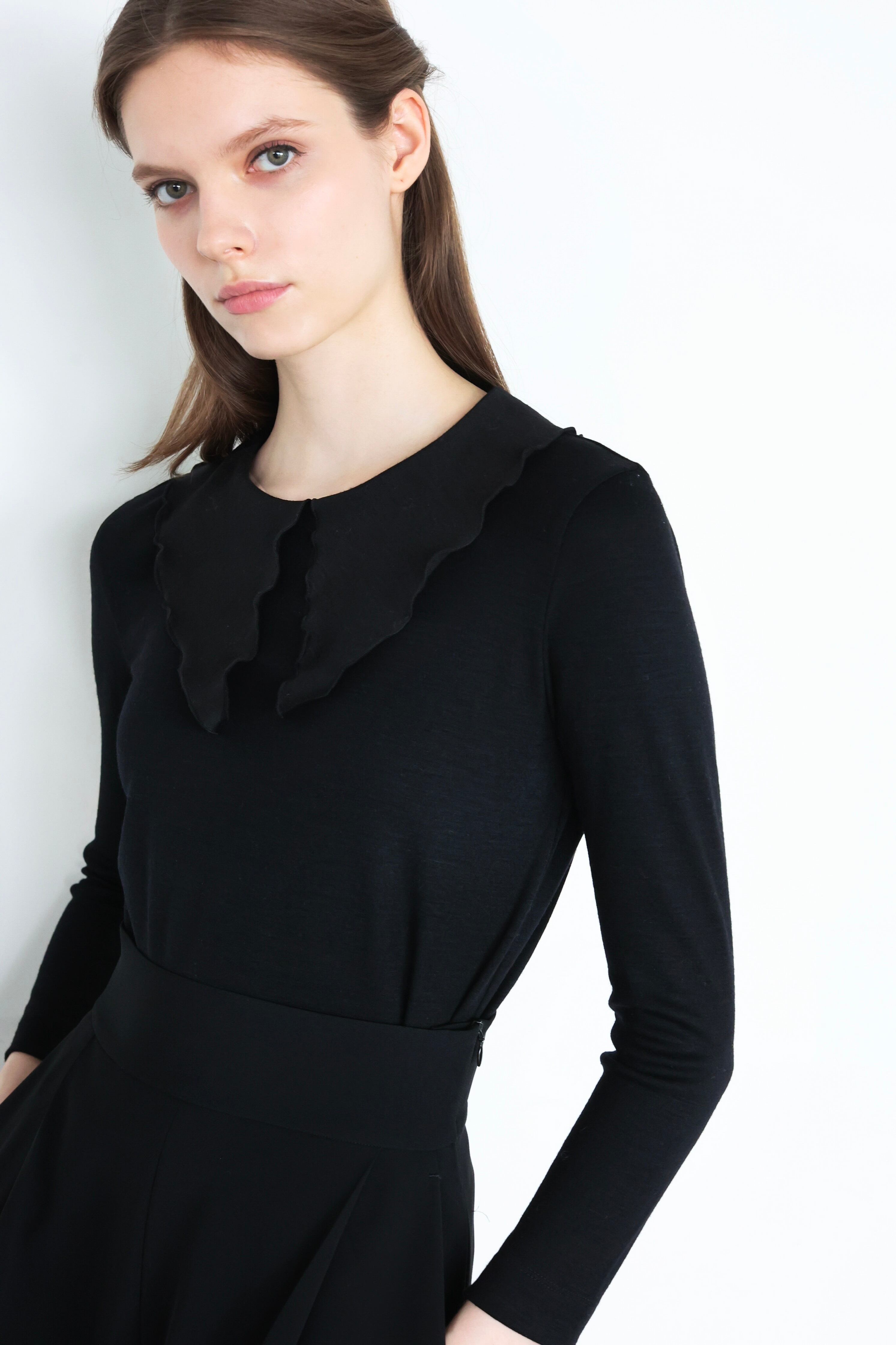 襟は2WAYで楽しんでいただけるよう、フリルを施した襟で、ちびリボンにもできます。