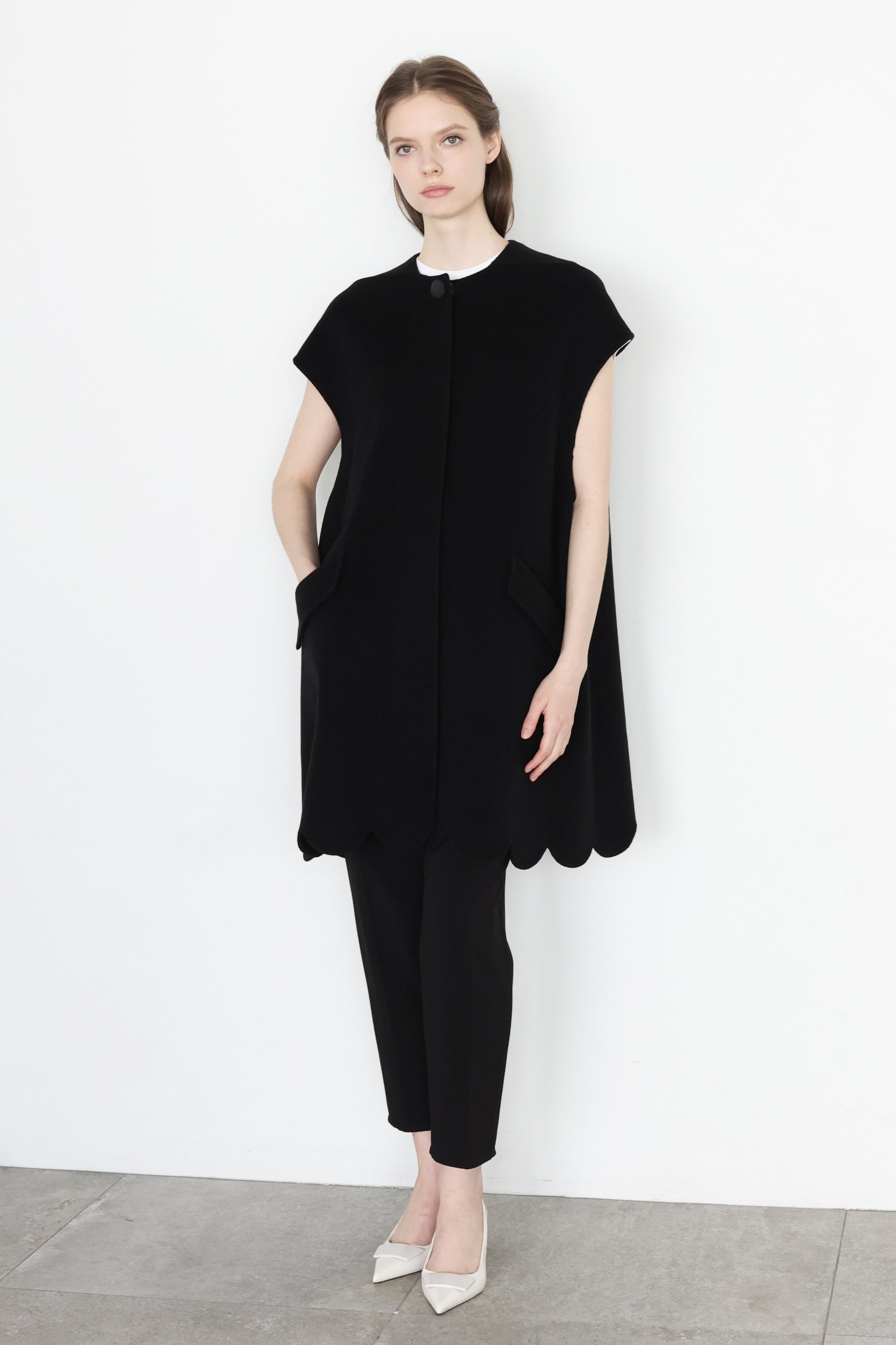 SUPER120 WOOL SCALLOPED GILET BLACK